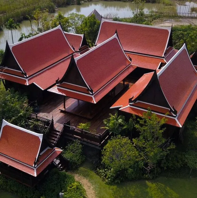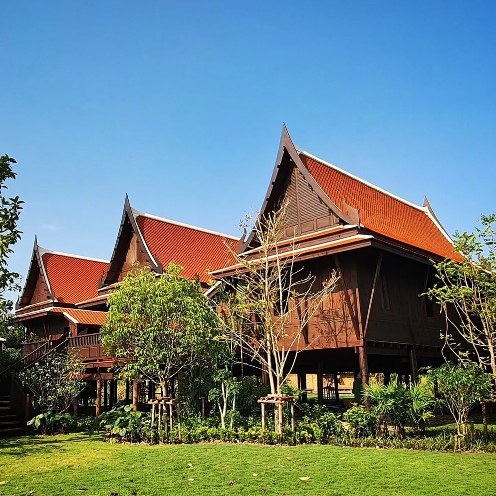 Adjacent to the Thai House, a serene man-made lake, around 2 meters deep, spans 100 meters by 200 meters, providing a picturesque backdrop.